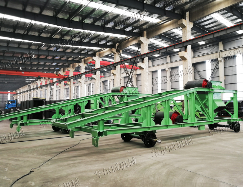 皮帶輸送機卸料小車屬于卸料裝置的一種,可以在輸送機水平段任意點卸料,方便整體布料。因帶有鋼軌,能輕松移動,可以實現(xiàn)兩側(cè)卸料或者單側(cè)卸料。根據(jù)需要可以分別設計成三通(中間和兩側(cè),但是不可以中間和兩側(cè)同時卸料)、二通(兩側(cè)或中間和單側(cè))和單側(cè)卸料。與主皮帶機相配套共分TD75、DTII和DTIIA型卸料車。